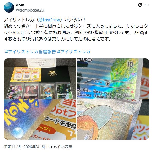 - 🙎♀️「アイリストレカでオリパを引いた人の口コミや評判が知りたい」