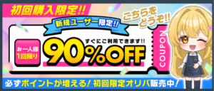 初回購入限定!すぐ利用できる90%オフクーポン