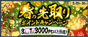 - 3人に1人が3,000ポイント以上当選!春の先取りポイントキャンペーン