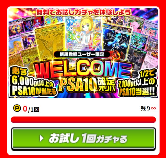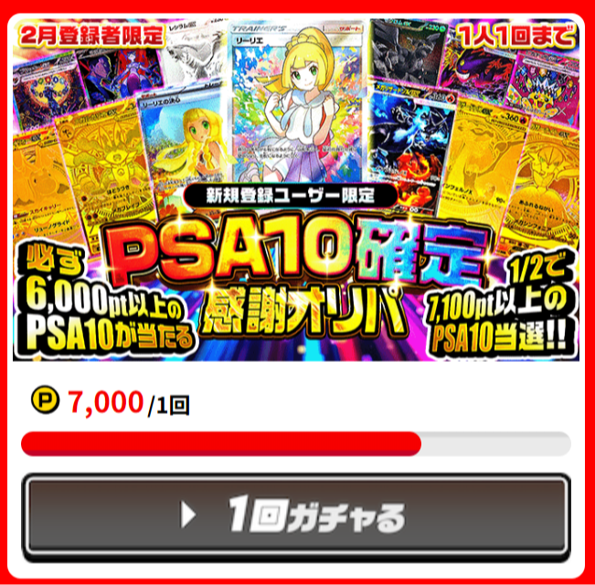 数百ptなのに1/2でPSA10確定なんて商品もあって、ワクワク感が凄い!
