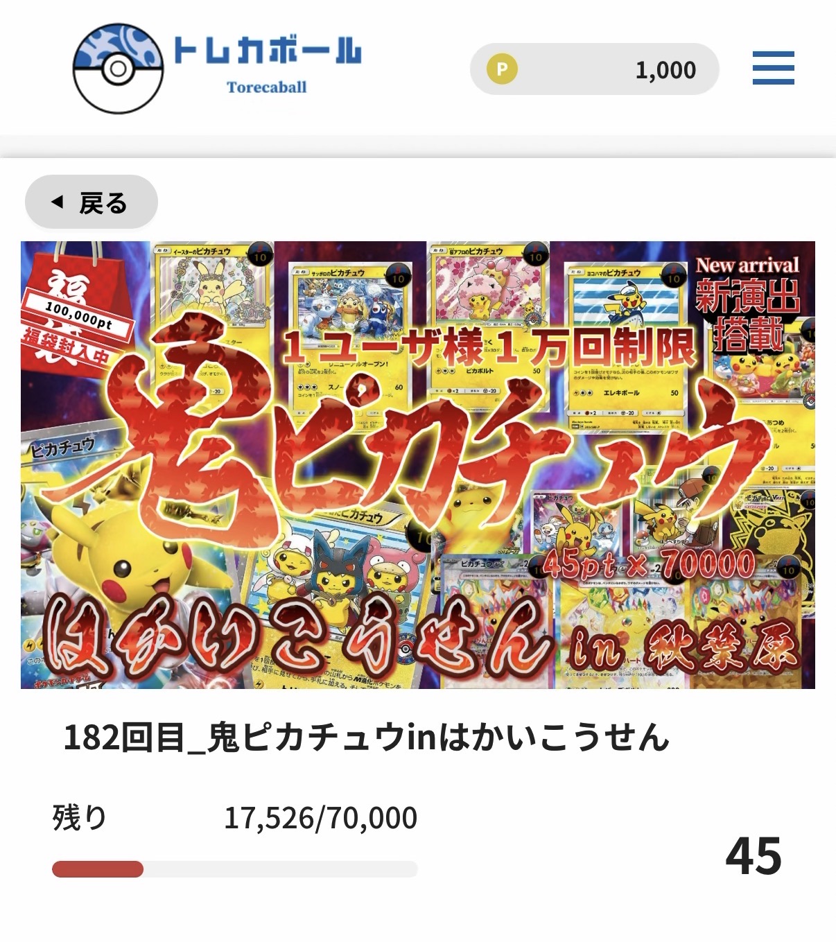 トレカボールは、数十〜数千ptのリーズナブルなオリパが多めで、気軽に回しやすいのが特徴です。